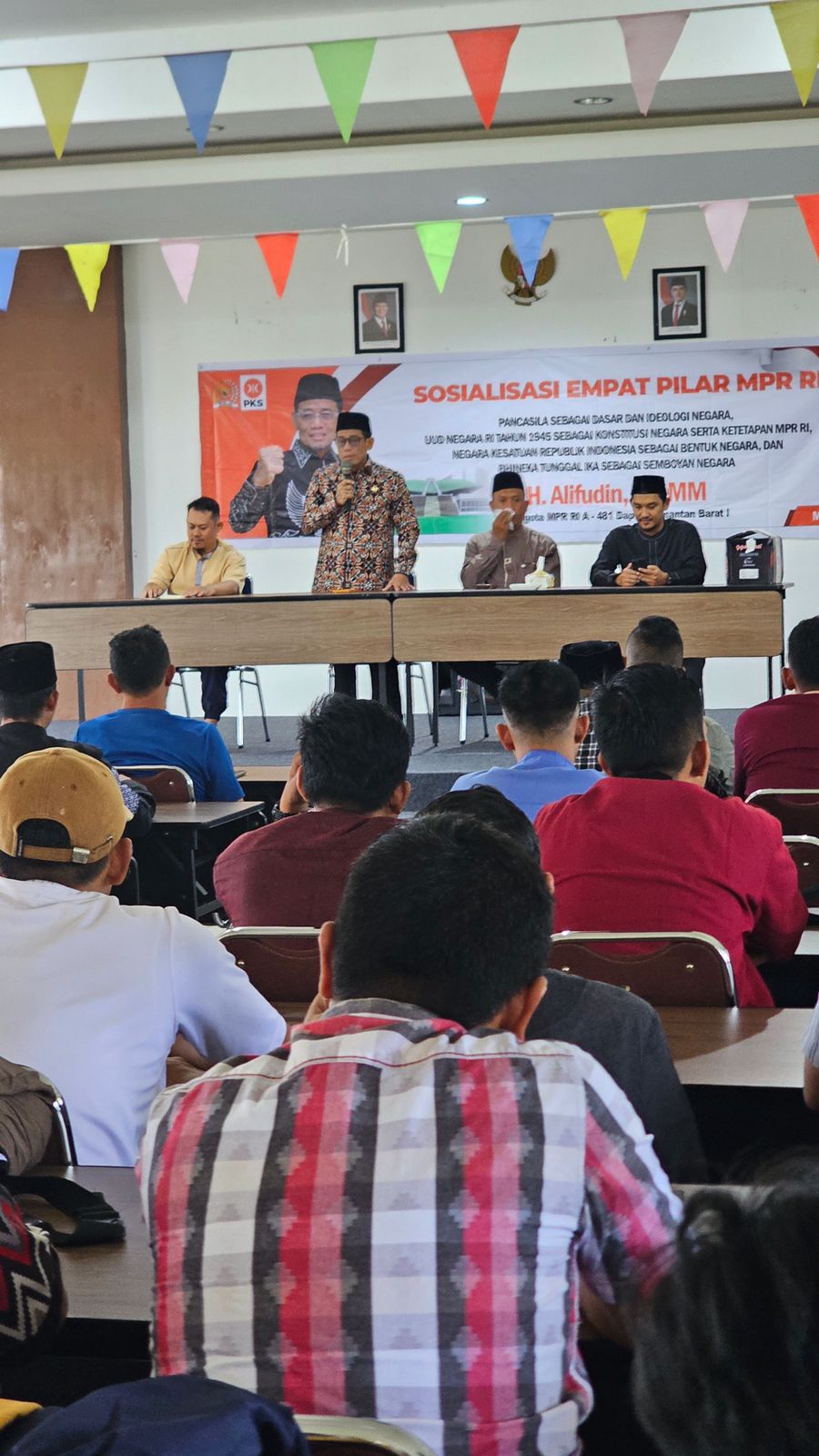 Di depan peserta, yang diisi rata-rata anak muda, Alifudin, menjelaskan salah satu tugas anggota MPR RI adalah melaksanakan sosialisasi Empat Pilar di dapilnya.
